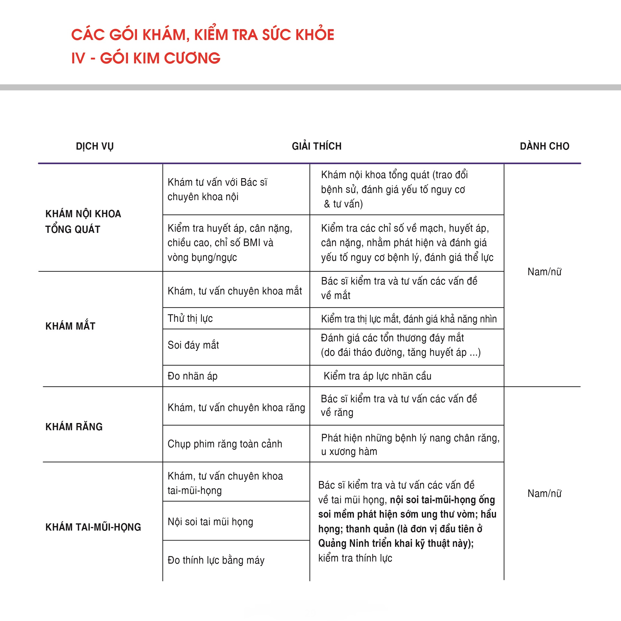 Gói khám Kim cương